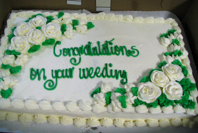 Gone are the days where your caterer offers some sort of chicken dish with a congealed gravy, mashed glutatoes (potatoes with the consistency of glue), and some sort of limp bean. You can do anything with your food. I have had a customer combine her family’ heritage and food (Italian) and her husband’s family’s favorite food (barbecue). They had a few Italian dishes and they had some barbeque. It was unique and the food was delicious. If you are trying to cut costs, think of it this way. If you have too much food and too many choices, your guests are going to get confused. Pick one or two things and find a caterer that does them well. Pasta and seafood is always a good option, roasted beef is another good option. Chicken can work well, but don’t be afraid to play with it some. Hors d’ouvres are a fantastic option for a light cocktail hour or if you want to do heavier ones for the reception. I did the cake for a bride that had a heavy hors d’ouvres reception and had a small dinner at a nice restaurant for close family and the bridal party later.